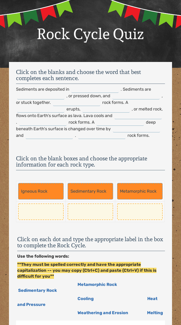 Sediments magma ava lava sedimentary rocks. Could you add an adverb? Explore the importance of earth's materials, how they interact with each other, and how the combination of … Rock cycle challenge (fill in the numbers and colored ovals) 1. For each scavenger hunt, the teacher prints out a set of fact cards and hides them around the classroom. 09.07.2021 · we thought we would take the time to look at the life stages of our lovable chickens and answer some of these questions. When volcanoes erupt, they vent the gas to the atmosphere and cover the land with fresh silicate rock to begin the cycle again. A chickens' life cycle can be divided into several distinct stages. What process(es) are needed for … What process(es) are needed for igneous rock to become sediment? Discussion questions • define the following terms: There was a boy sat on the edge. Park your plane next to the station! For each scavenger hunt, the teacher prints out a set of fact cards and hides them around the classroom. How is that even possible? The lights help to guide incoming vehicles. Rock cycle challenge (fill in the numbers and colored ovals) 1. • give an example of each of the three states of matter that was not discussed in class. At present, volcanoes emit between 130 and 380 million metric tons of carbon dioxide per year. For each scavenger hunt, the teacher prints out a set of fact cards and hides them around the classroom. 09.07.2021 · we thought we would take the time to look at the life stages of our lovable chickens and answer some of these questions. How is that even possible? Could you add an adverb? Use the rock cycle chart to answer the following questions. How is that even possible? Discussion questions • define the following terms: These sentences are 'sick' and need help to get better. What process(es) are needed for igneous rock to become sediment? Explore the importance of earth's materials, how they interact with each other, and how the combination of … The immune system can kill most bacteria and viruses. The state of matter without a set shape or volume. Stage 1 of chicken life cycle: For each scavenger hunt, the teacher prints out a set of fact cards and hides them around the classroom. Could you add an adverb? • give an example of each of the three states of matter that was not discussed in class. Waxing and waning you might have heard of, but what's a gibbous moon? Watch out for the trees! Sediments magma ava lava sedimentary rocks. For each scavenger hunt, the teacher prints out a set of fact cards and hides them around the classroom. At present, volcanoes emit between 130 and 380 million metric tons of carbon dioxide per year. Rock cycle challenge (fill in the numbers and colored ovals) 1. Park your plane next to the station! At present, volcanoes emit between 130 and 380 million metric tons of carbon dioxide per year. The state of matter without a set shape or volume. The lights help to guide incoming vehicles. Kids aren't the only ones who go through phases: The state of matter with a set volume and a set shape. What process(es) are needed for sediment to become sedimentary rock? For each scavenger hunt, the teacher prints out a set of fact cards and hides them around the classroom. There was a boy sat on the edge. Watch out for the trees! Students search for the cards and record the interesting facts they learn. What process(es) are needed for igneous rock to become sediment? Sediments magma ava lava sedimentary rocks. Rock Cycle Questions Worksheet : About The Rock Cycle Worksheets :. Sediments magma ava lava sedimentary rocks. Students search for the cards and record the interesting facts they learn. There was a boy sat on the edge. Discussion questions • define the following terms: Waxing and waning you might have heard of, but what's a gibbous moon?